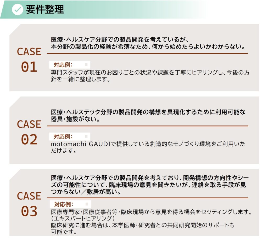 以下の「各研究ステージの支援事例」において、GAUDIに寄せられる よくあるお困りごとや、それに対する対応例などをご紹介致します。